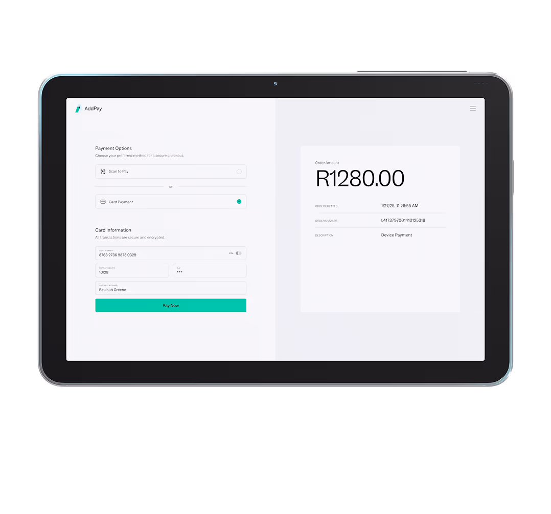 Easily set up recurring payments with our Collections Platform. Set up EFT debit orders and recurring card payments or use DebiCheck on your AddPay POS device.